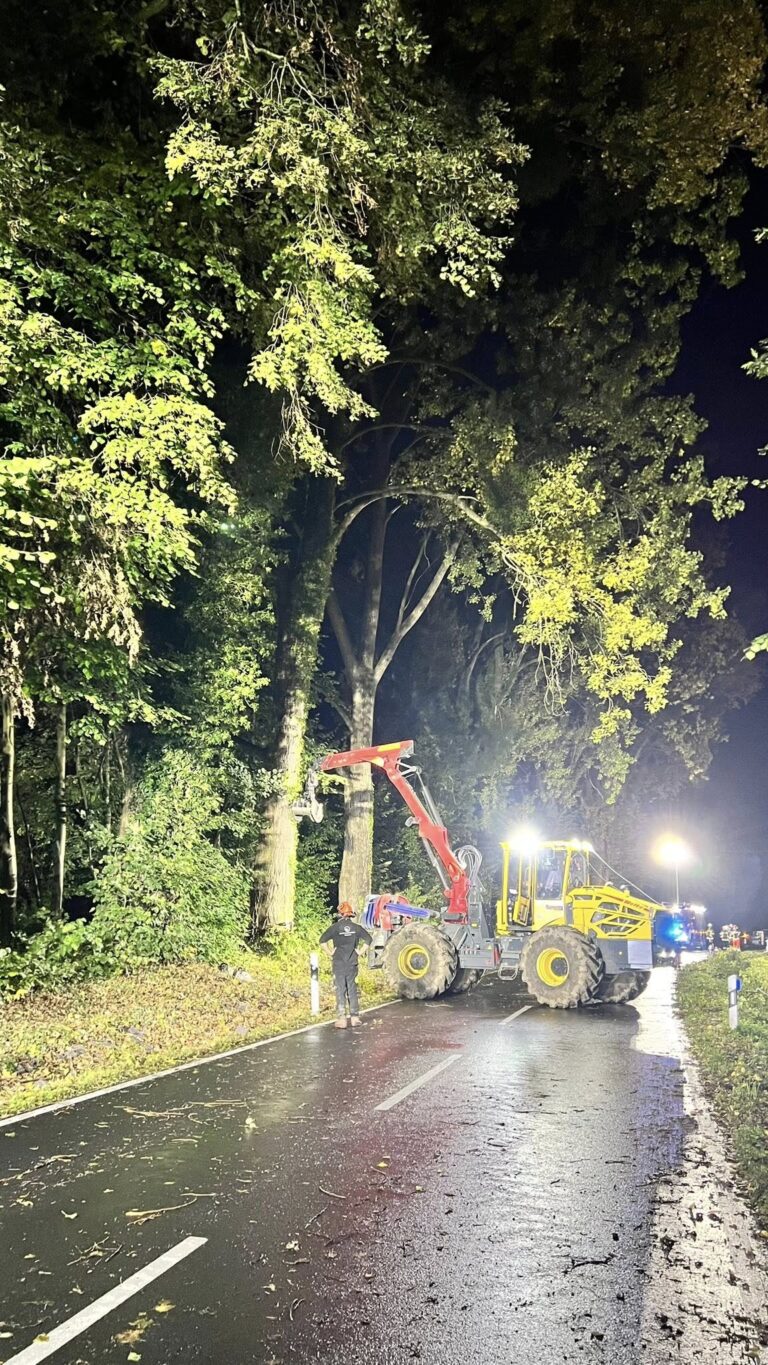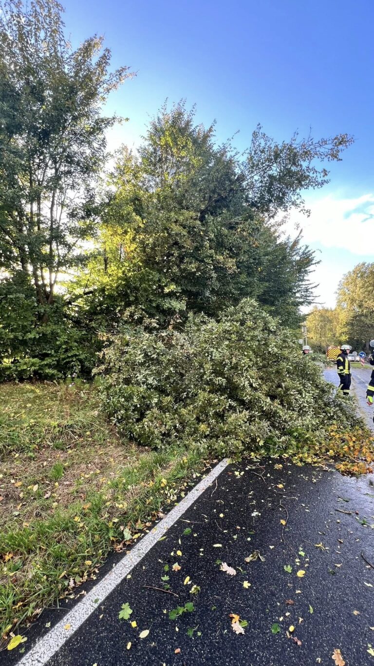 | Information: | Die Löscheinheit Söven wurde um 17:19 Uhr mit dem Stichwort TH1–STURM auf die L331 alarmiert. Vor Ort sollten mehrere Bäume auf der Fahrbahn liegen. Beim Eintreffen bestätigte sich die Lage. Nach einer ausgiebigen Erkundung wurden noch drei weitere Bäume festgestellt, die drohten auf die Straße zu fallen. Diese wurden durch eine Fachfirma gefällt. Für die gesamte Einsatzdauer war die L331/Sövener Str. voll gesperrt. Um 20:36 Uhr konnte der Einsatz beendet werden. |