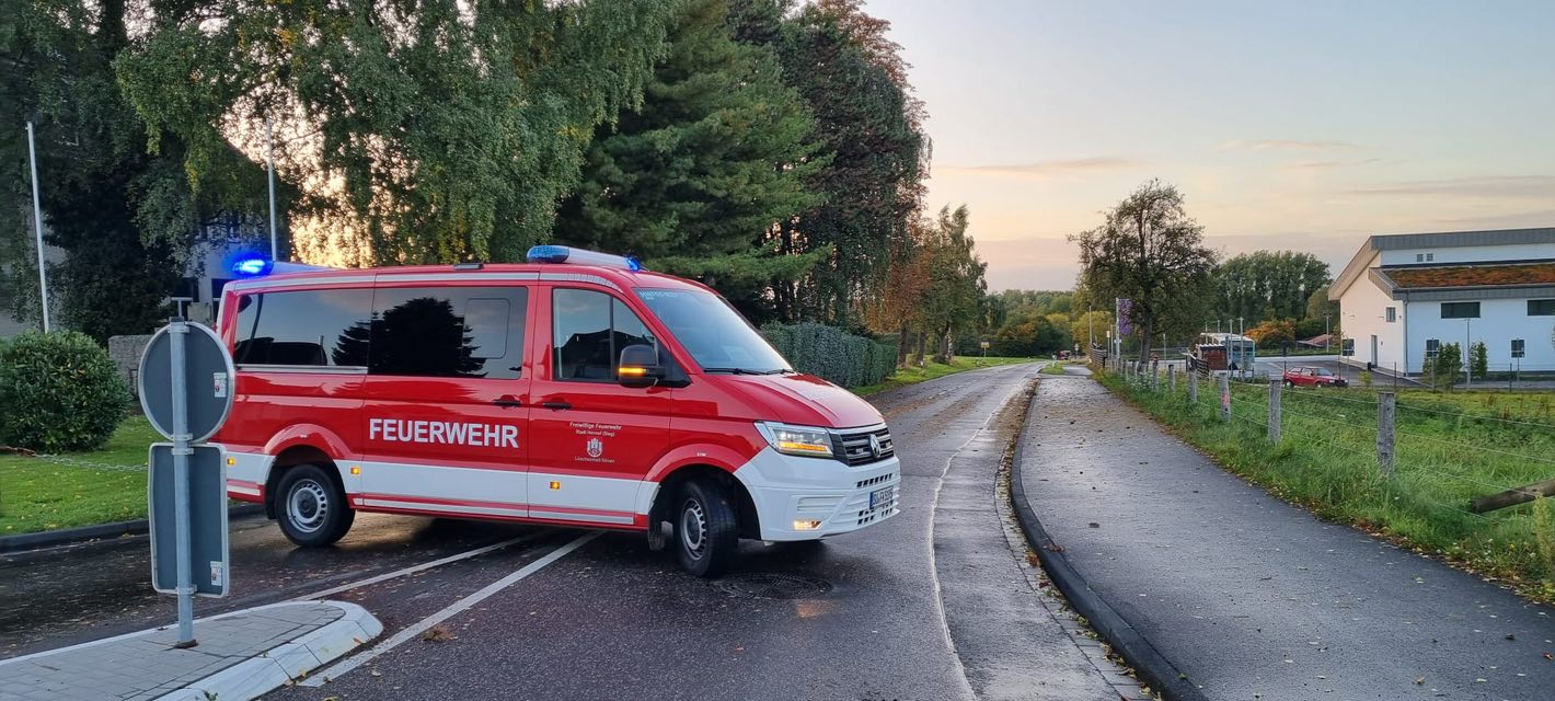 Information: | Am Sonntag wurde die Löscheinheit mit dem Einsatzstichwort „TH1-SONSTIG“ nach Dambroich alarmiert. Vor Ort hatte sich ein kleiner Bach einen neuen Weg gesucht und dabei das Erdreich unterspült. In Zusammenarbeit mit dem Bauhof wurde das Wasser mithilfe von Planen und Sandsäcken wieder in seine ursprüngliche Flussrichtung geleitet. Im Anschluss konnte die Einsatzstelle an den Bauhof übergeben werden. |